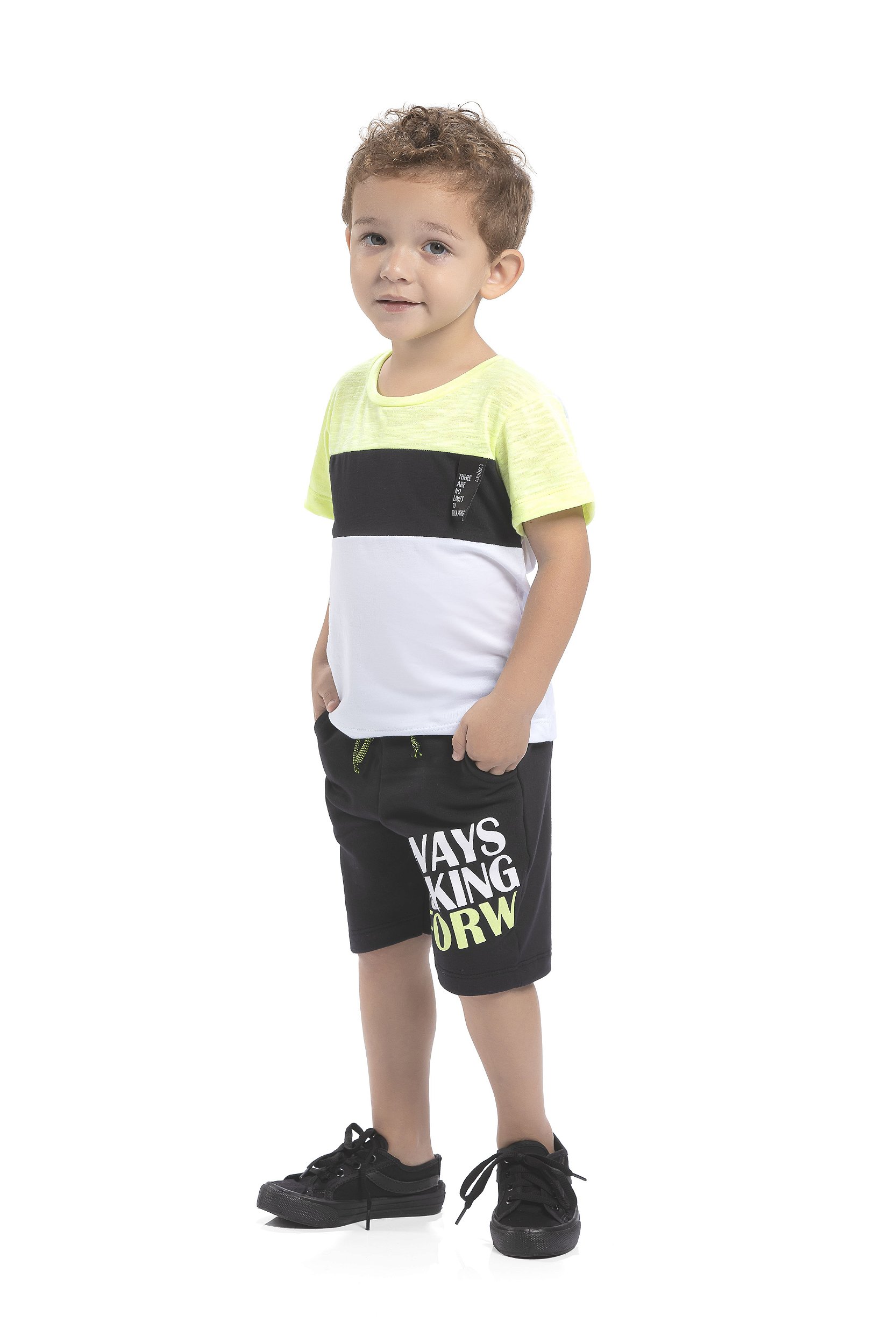 Bermuda de moletom com elástico, cordão e bolso com estampa na perna.