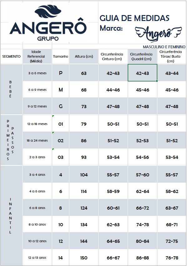 Observação: Se ficar na dúvida quanto ao tamanho, confira nossa tabela de medidas.
